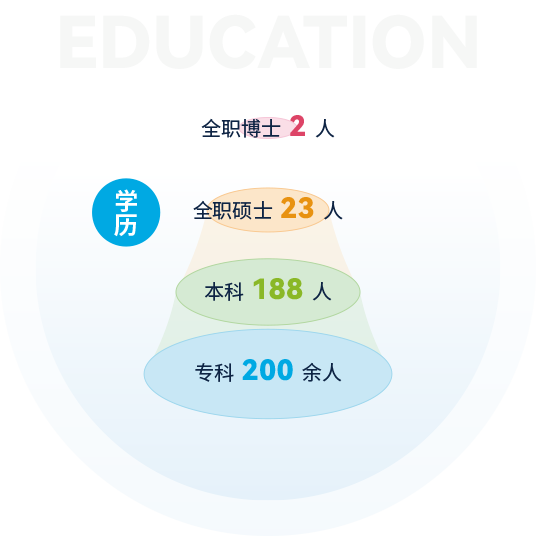 截止2024年,公司擁有各類人才400余人,其中全職博士2人,全職碩士23人,本科188人,???00余人,注冊會計師12人,專利代理師9人,軟件工程師7人,技術(shù)交易經(jīng)紀人5人,南京企服中心等各類機構(gòu)外聘專家6人,公司還和南京大學(xué)、東南大學(xué)、南京農(nóng)業(yè)大學(xué)、南京信息工程大學(xué)、南通大學(xué)、江蘇開放大學(xué)等建立了良好的合作關(guān)系。